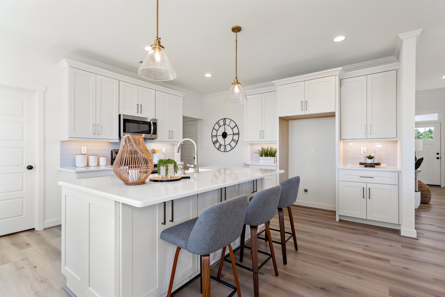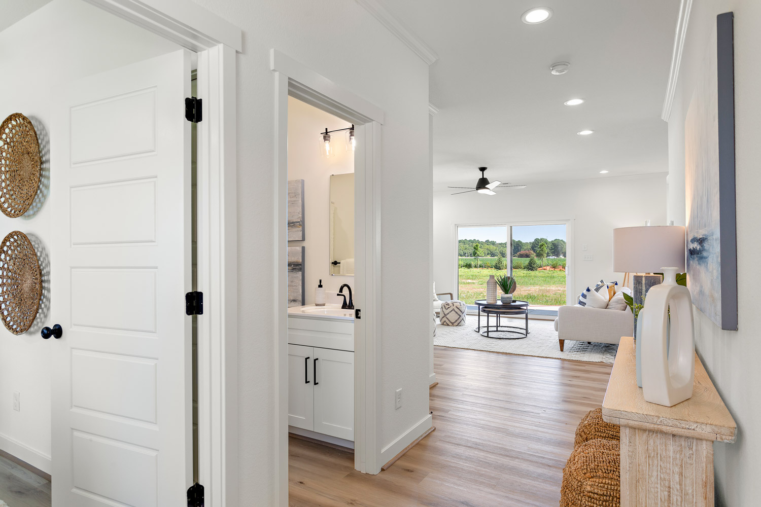 This James floorplan is an open living space for the entire household to gather and make memories on the main floor. The expansive family room connects to a large rear-covered porch via an 8’ wide sliding glass door. Connecting to the vaulted Owner bedroom, unwind in the upgraded Owner bath’s spa-like shower. The 2-car garage has some great storage space adjacent to the entry of the home which greets guests with a covered porch. Our standards are other builders’ upgrades including: our standard kitchen currently with the Frigidaire energy star stainless steel appliances, granite countertops on standard island & maple cabinets with 42″ uppers, raised panel & soft close drawers. Contact us for current pricing on this floor plan.