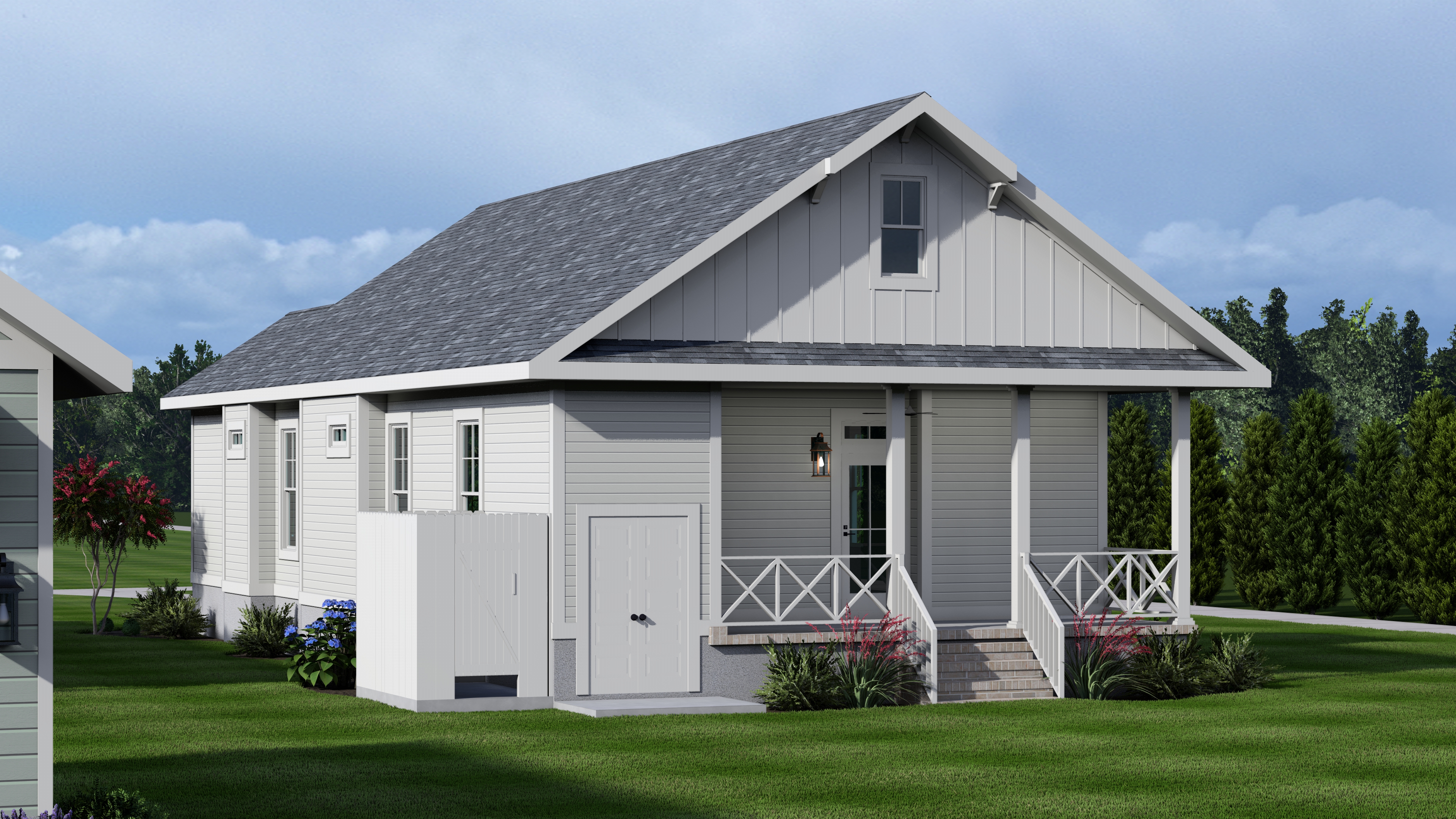 The Blue Point is a coastal-inspired single family residence offering the perfect blend of modern amenities and Eastern Shore elegance. Designed to provide a cozy, intimate living experience without compromising functionality, style or comfort, this is a perfect second-home beachside retreat or full-time residence for families looking to right-size and simplify. The 3-bedroom, 2-bathroom Blue Point has an open floor plan that lives like a home much larger and a lovely 16' wide covered front porch that opens onto a park-like setting. Features include granite counters, custom cabinetry, tiled showers, tankless water heater, washer/dryer, outdoor shower and outdoor storage space.