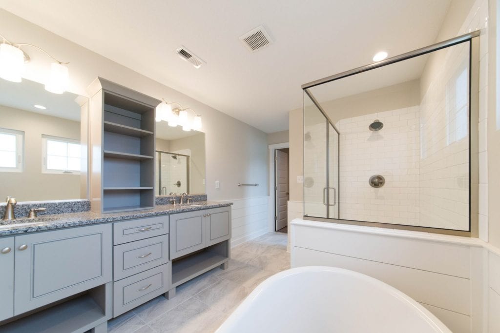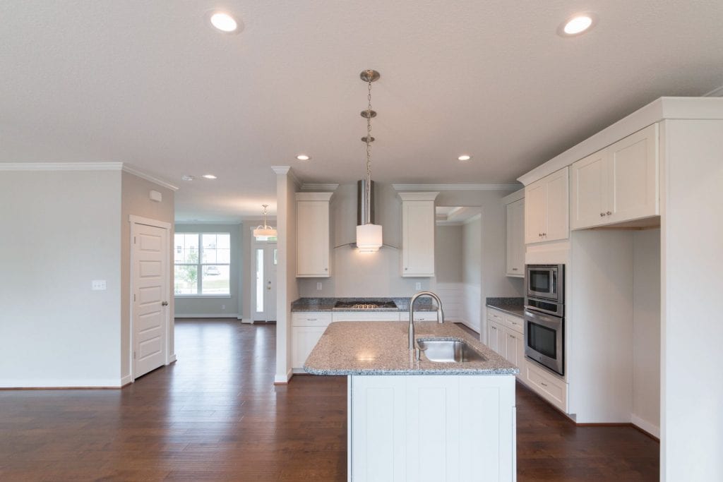 Our Franklin new home design features 4 to 5 bedrooms with the primary suite on the 2nd floor. Our standards are other builder’s upgrades including: our standard kitchen currently with the Kenmore Stainless Steel Appliances, granite countertops & maple cabinets with 42″ uppers, raised panel & soft close drawers. Relax in your tub or full size tile shower in primary bathroom.